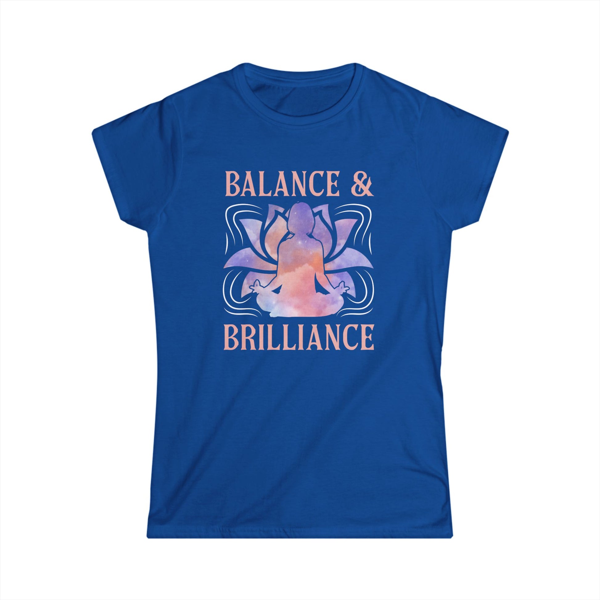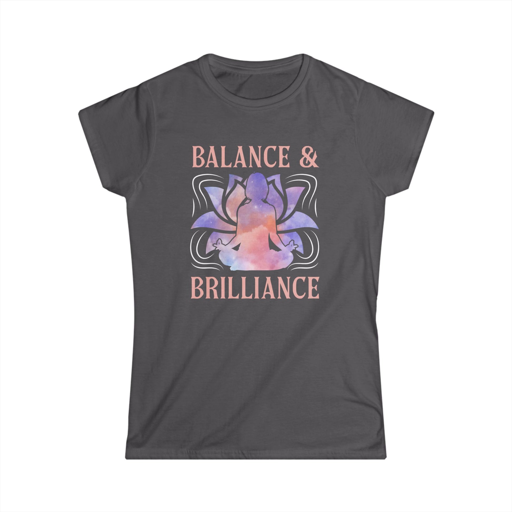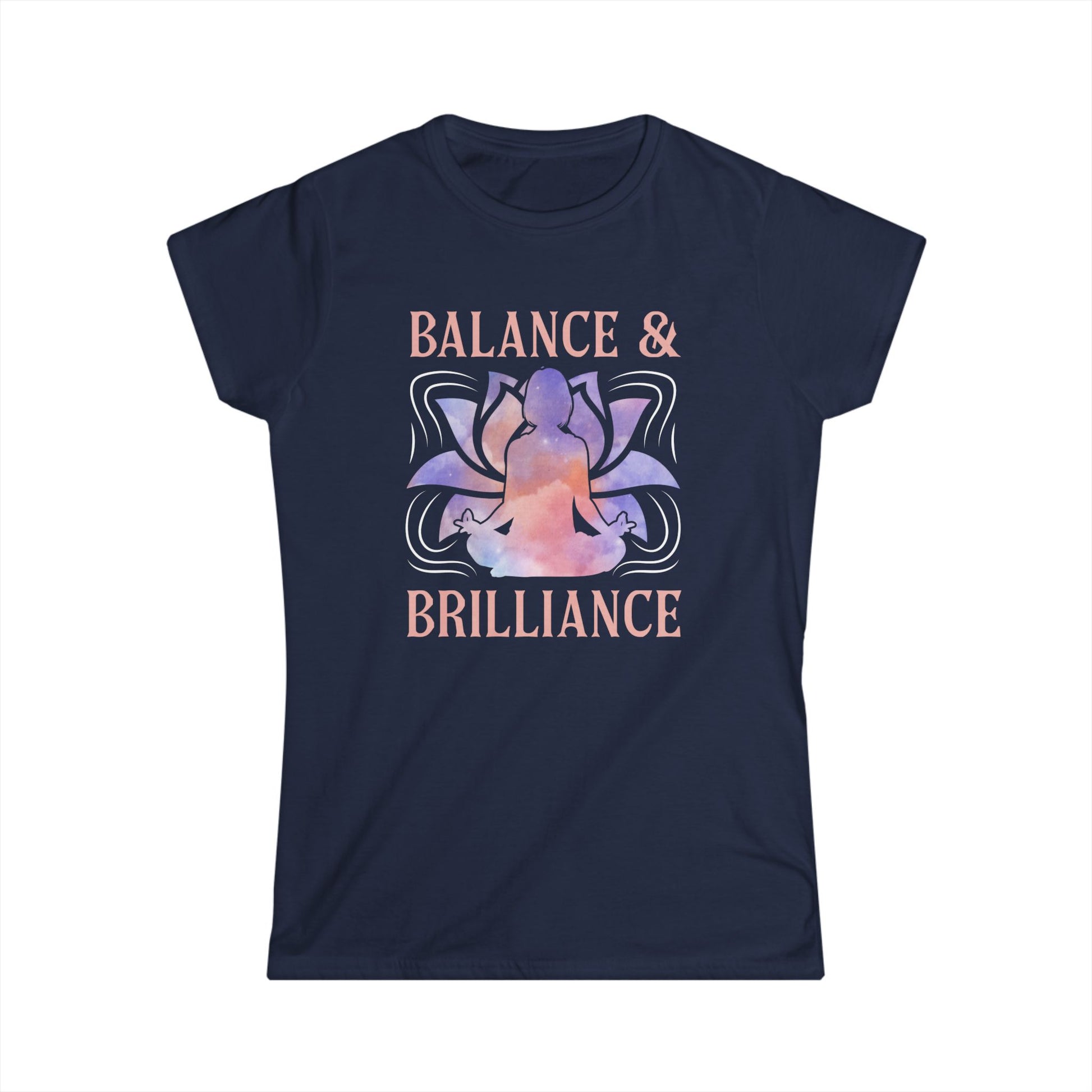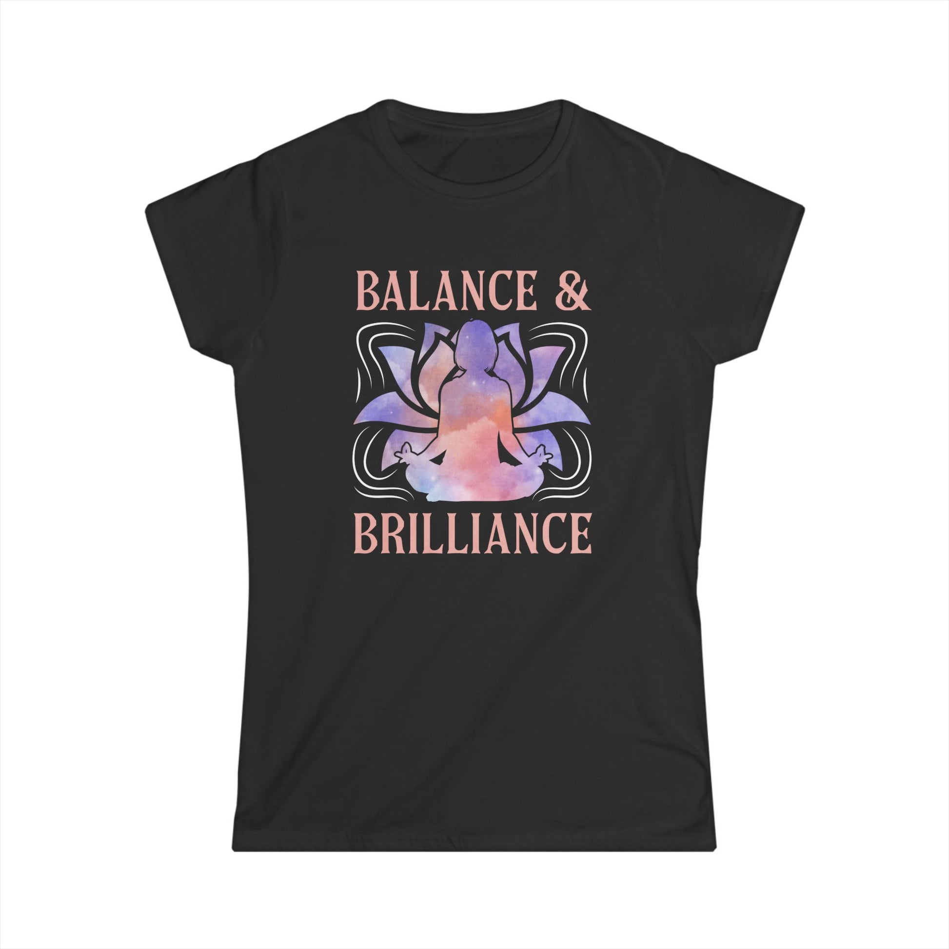 Introducing the perfect addition to your wardrobe: this Women's Softstyle Tee exudes a sense of calm and positivity with its elegant design featuring 'Balance & Brilliance'. Crafted for comfort, this semi-fitted t-shirt is ideal for yoga enthusiasts, wellness lovers, and anyone seeking a daily reminder to stay centered. Its lightweight fabric makes it perfect for layering on cool mornings or wearing solo during warm afternoons. Whether you're heading to a gym class, meeting friends for coffee, or enjoying a quiet day at home, this tee seamlessly fits into any lifestyle. This product is also a thoughtful gift for occasions like birthdays, wellness retreats, or yoga festivals, and it’s a great choice for celebrating self-care days or International Yoga Day.