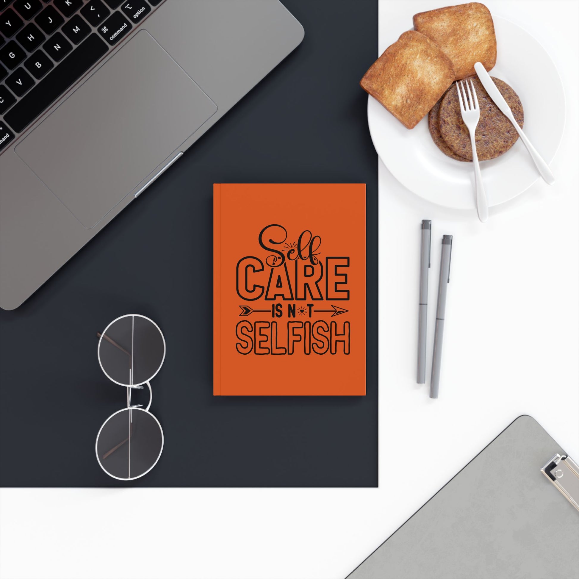 Self Care Hard Backed Journal - Motivational Red Notebook for Personal Growth